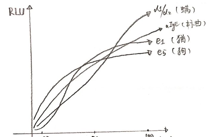 我們來分析一下他這句話的意思,尤其是第二點(diǎn)。由于曲線和各個(gè)特異性項(xiàng)目采用的是相同的酶,所以我們可以想象在一個(gè)理想狀態(tài)下,如果特異性項(xiàng)目和曲線測出來的熒光值相同,那么就可以證明此時(shí)特異性項(xiàng)目抓住的sIgE和曲線抓住的tIgE的量是相同的;但是有一個(gè)問題,這兩者各自的“抓取效率”如何呢?