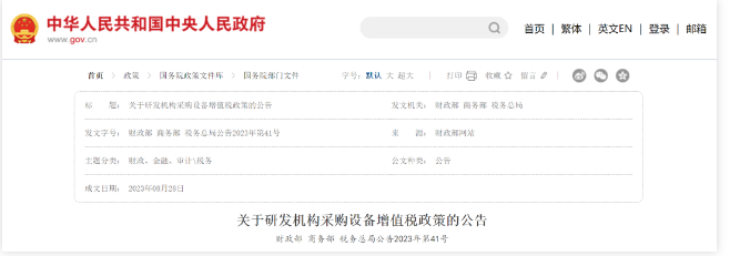 財(cái)政部 商務(wù)部 稅務(wù)總局關(guān)于研發(fā)機(jī)構(gòu)采購(gòu)設(shè)備增值稅政策的公告