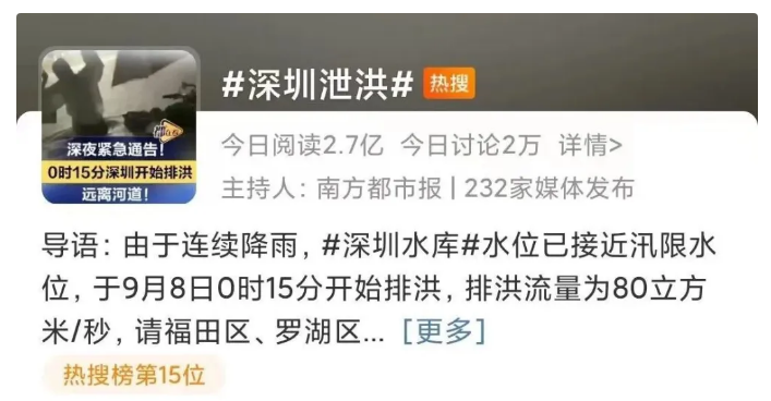 5日-9日,臺(tái)風(fēng)“???/span>先后兩次登陸福建、廣東。受其影響,南方多地出現(xiàn)特大暴雨,福建省、廣東省氣象臺(tái)多次發(fā)布“暴雨預(yù)警一級(jí)”。福州、廈門、漳州、深圳、廣州、佛山等城市內(nèi)澇嚴(yán)重,部分城市雨水齊腰,短時(shí)間強(qiáng)降雨超過100毫米,深圳降雨量更是打破1953年以來的降雨極值,地鐵灌水,深圳泄洪多次登上各大平臺(tái)的熱搜第一。
