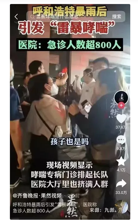 隨后,呼和浩特市衛(wèi)健委工作人員表示,近期當(dāng)?shù)囟嗉裔t(yī)院的雷暴哮喘病人確實(shí)增多了。